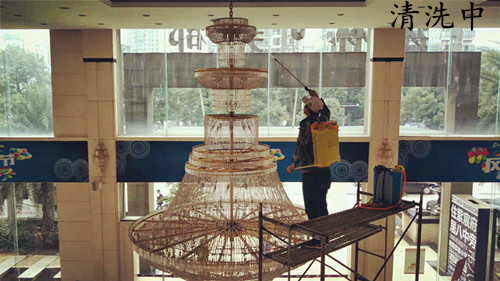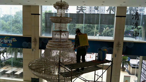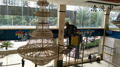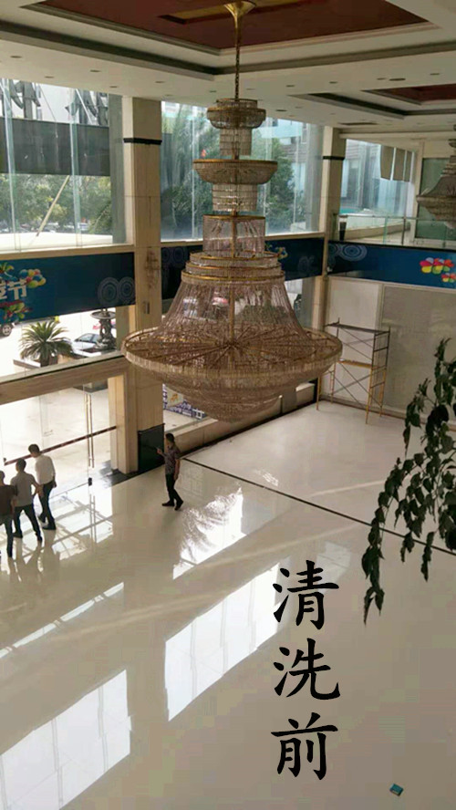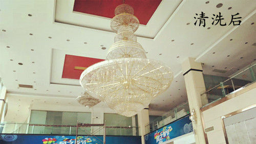 我司采用的是無需拆洗方法,沐林美郡的大廳吊燈離地面很高,一般的梯子根本夠不著,必須搭幾層腳手架,由我司專業(yè)的工作人員清洗,清洗后的水晶吊燈煥然一新,晶瑩剔透,獲得甲方領(lǐng)導的高度贊揚!