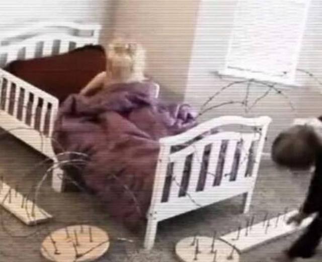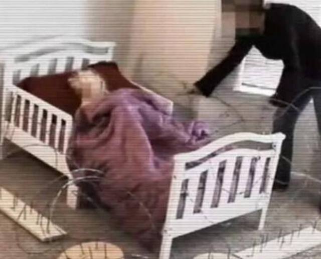 這名保姆為了不讓這熊孩子到處亂跑,竟找來(lái)木板上面釘上鐵丁,放在孩子的床邊,隨后用鐵絲網(wǎng)將孩子團(tuán)團(tuán)圍住,防止熊孩子下床亂跑!當(dāng)孩子的爸爸看到監(jiān)控錄像,嚇得立馬報(bào)警。